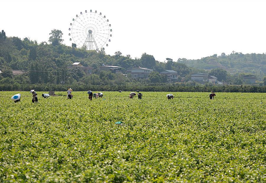 花农在烈日下采摘茉莉花