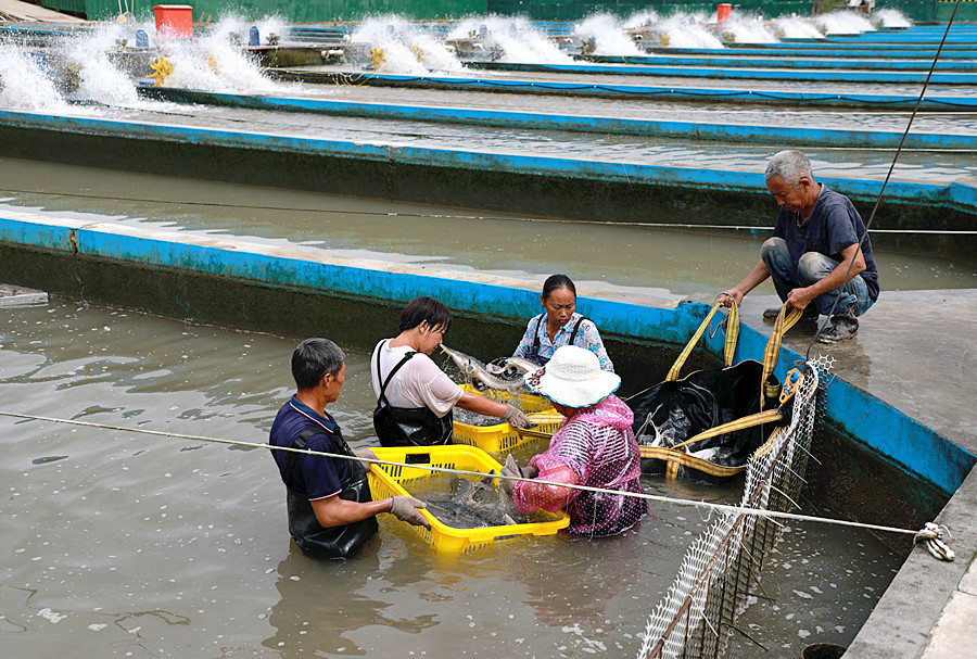 8月26日,乐山市沙湾区太平镇马胡埂村的鲟鱼产业园,乐山古浔生物科技有限公司(以下简称“古浔公司”)工作人员正忙着把鲟鱼从长方形的育苗池转移到圆形的成鱼养殖池。“第一批鲟鱼已经一岁多,每条有10斤重,该从‘幼儿园’毕业了。”