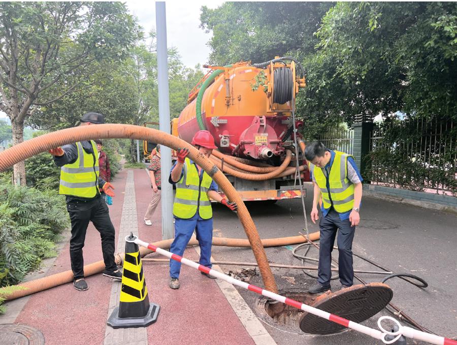 “我们主要对主城区600 多公里的地下管网,以及1.2 万余个雨污检查井和2.3 万个雨箅子开展全覆盖清掏工作。”兴绿公司排水管理部副部长李全介绍,公司采取“人工+机械”联合作业模式,对狭窄管段启用吸污车实施冲洗,有效消除板结沉积物。同时,针对柏杨片区、牛咡桥等重点易堵区域建立了动态监测台账,实施"重点管段双周巡、普通管网月度查"的预防性养护机制,确保问题及时发现、快速处理。