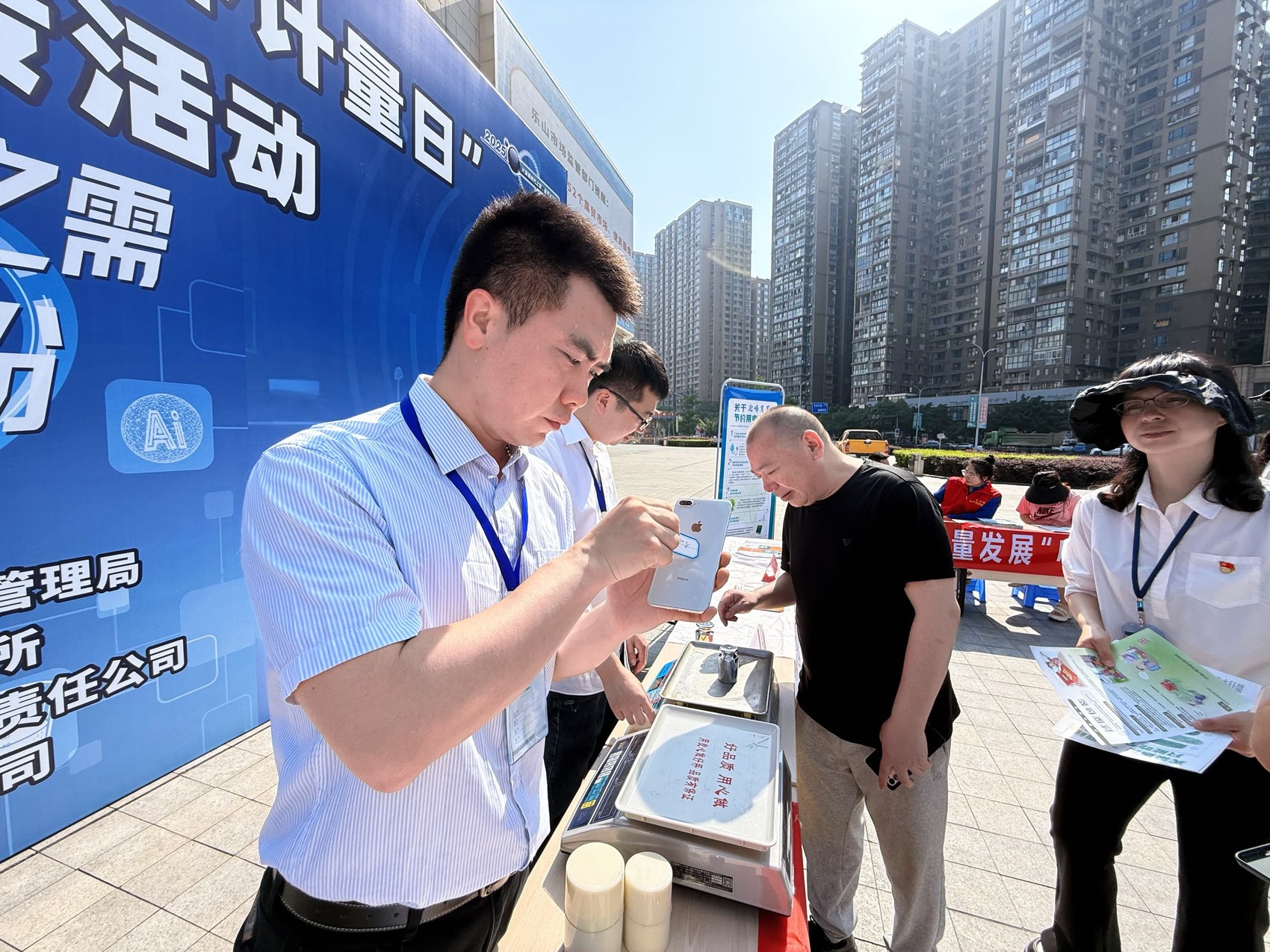 5月20日,乐山市2025年“世界计量日”暨节能宣传活动在世豪广场举行。活动现场通过“手机变砝码”趣味活动、电子秤防作弊演示、计量知识问答等形式,向市民普及民生计量常识。