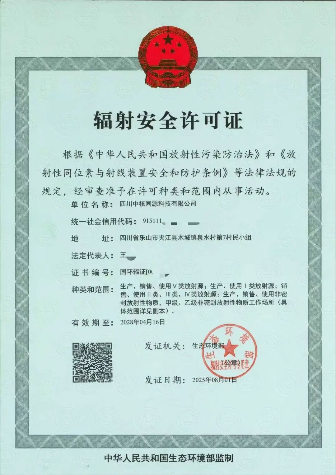 据了解,辐射安全许可证是依据相关法律法规,向从事放射性同位素和射线装置生产、销售、使用的单位核发的行政许可证件,是相关单位开展放射性活动的法定准入凭证,确保其操作符合国家放射性污染防治与安全防护要求,保障公众健康和环境安全。