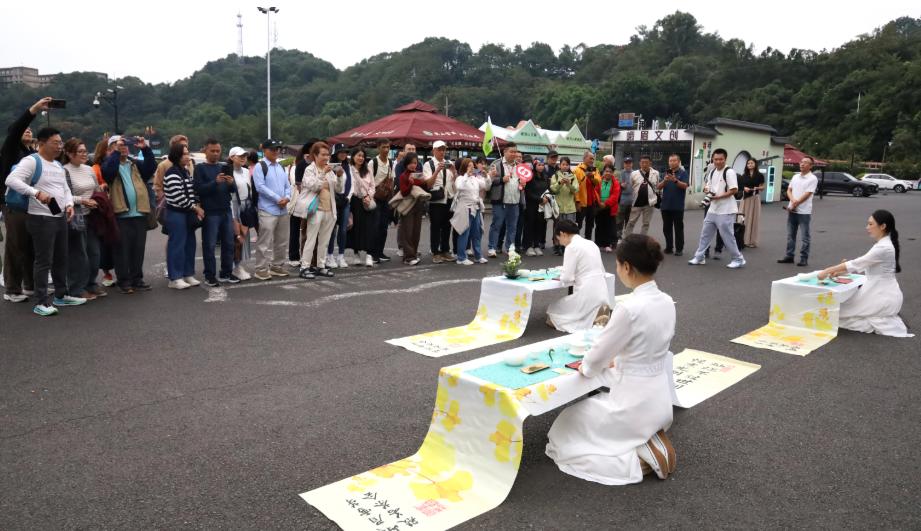 当天,游客们从峨眉山脚下一场特色茶艺表演启程。“这是我第一次来到峨眉山景区,当地人对我们的招待特别热情,表演很有中国特色,体验非常愉快!”游客文萱表示。