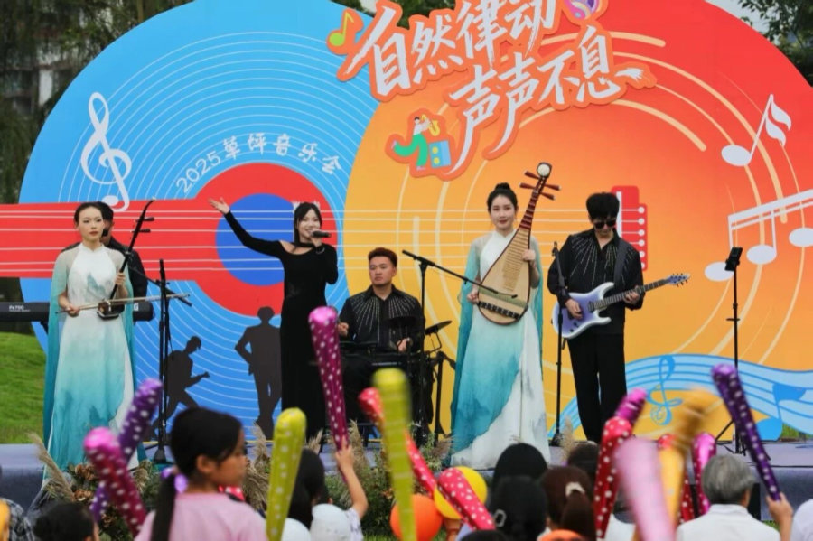 国庆期间,该县策划推出了系列文旅活动。10月1日晚,沐川湿地公园内,“自然律动,声活之夜”草坪音乐节率先登场。演出现场,既有《茉莉花》《紫竹调》等经典民乐婉转流淌,营造出“乐在画中游”的雅致意境;也有《你要跳舞吗》《海阔天空》等跨越时代的热门金曲,瞬间点燃全场观众的激情。