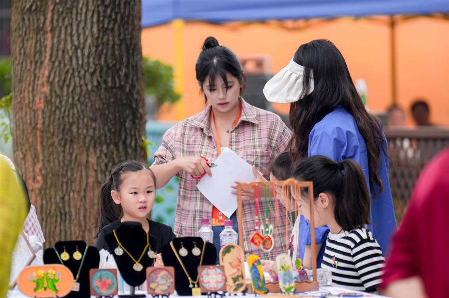 非遗体验区更是排起长队。大人小孩围在桌前,拿起刷子蘸上颜料,亲手印制夹江年画;皮影戏台前,小朋友们凑得紧紧的,跟着艺人的动作模仿皮影摆动;掐丝珐琅、黏土制作的小摊前,大家撸起袖子动手创作,把乡野里的非遗玩出了新花样。
