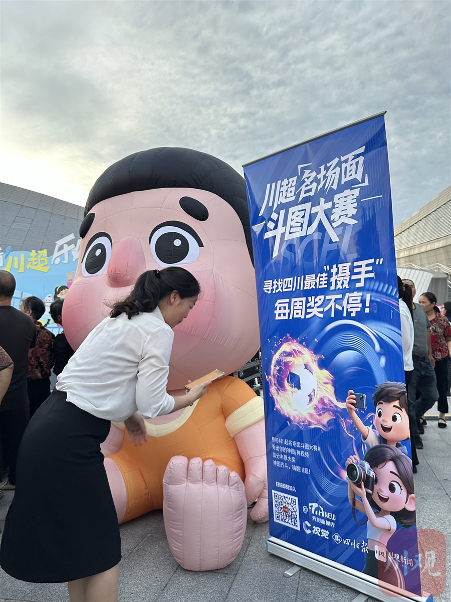 跟着赛事去旅行,由川观新闻发起的“川超名场面斗图大赛”也在乐山重磅登陆。从乐山奥林匹克中心绿茵场上的滚动大屏,到乐山主城区的世豪商圈8K屏幕,再到嘉州美食主题消费展,“川超名场面斗图大赛”宣传海报,在各场景都吸引了观众目光。