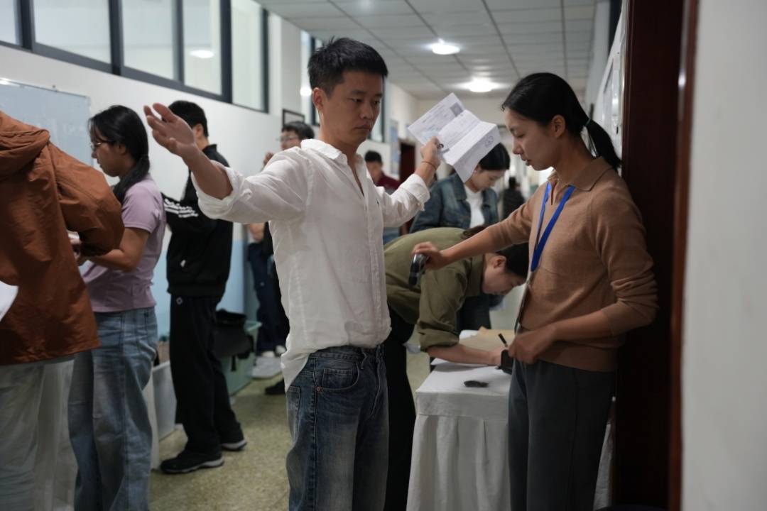 上午8时许,考生们陆续来到考场外,或手持资料做最后复习,或与同伴低声交流,目光中既有紧张也有期待。