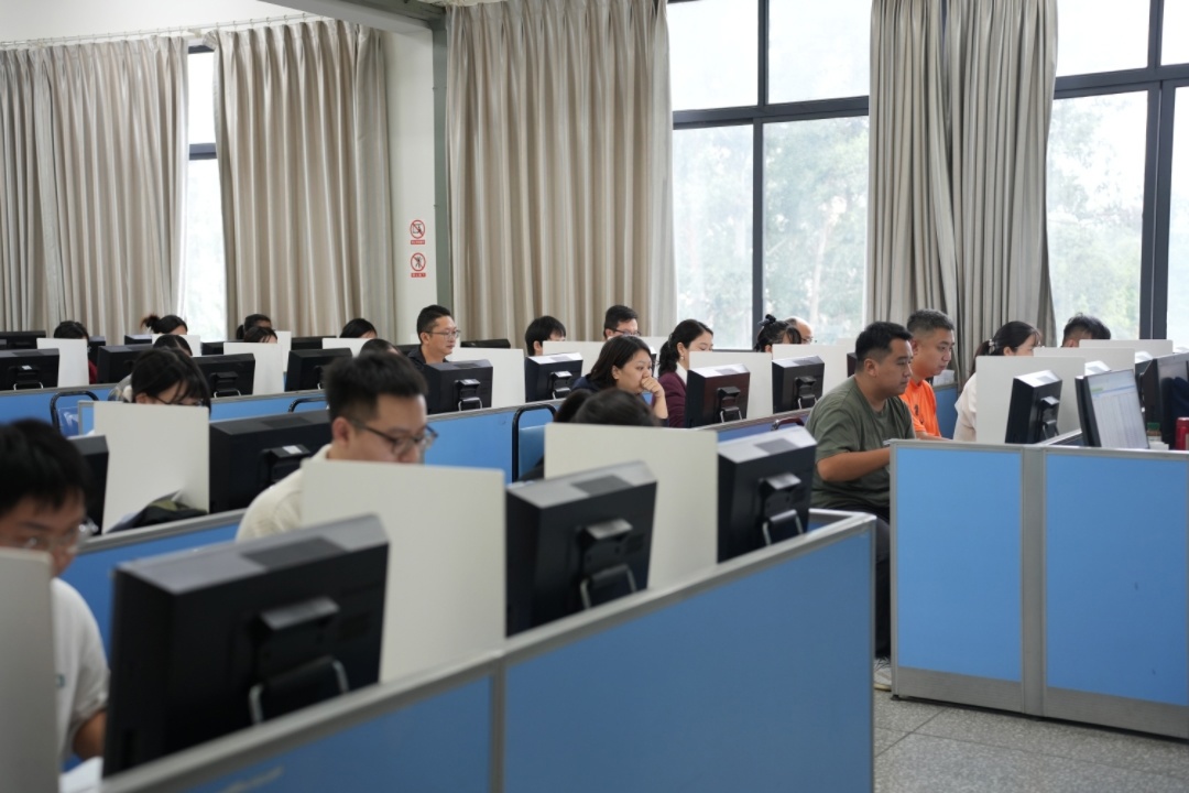 开考铃声响起后,考场内瞬间安静下来。考生们凝神屏息、专注答题,键盘敲击声与屏幕微光交织,勾勒出一幅“为理想而战”的生动图景。