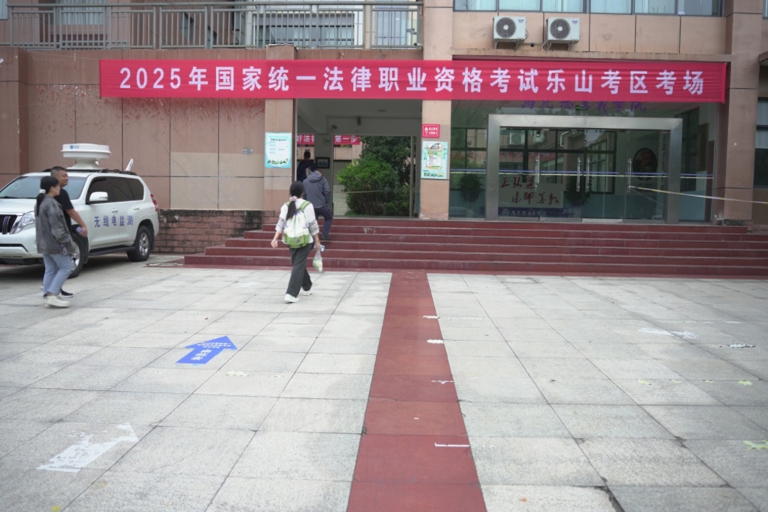10月12日上午,2025年国家统一法律职业资格(主观题)考试乐山考区在乐山师范学院北校区开考,共300余人报考,设10个正式考场和1个备用考场。经过客观题考试的筛选,成功晋级的考生们再次走进考场,为取得法律职业资格展开最后冲刺。