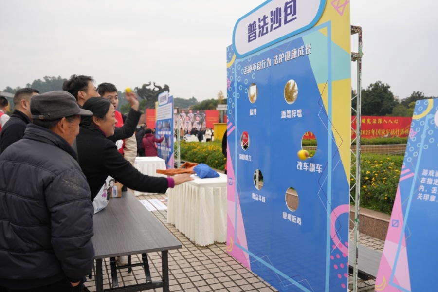 现场,市区两级相关部门设置普法宣传点位,向过往市民群众发放普法资料,提供法律咨询服务,为大家答疑解惑。法治连连看、普法沙包、法治大转盘等游园活动环节更是吸引众多市民参与,让大家在欢乐普法游戏中学习了解法律知识,潜移默化提升法律意识。