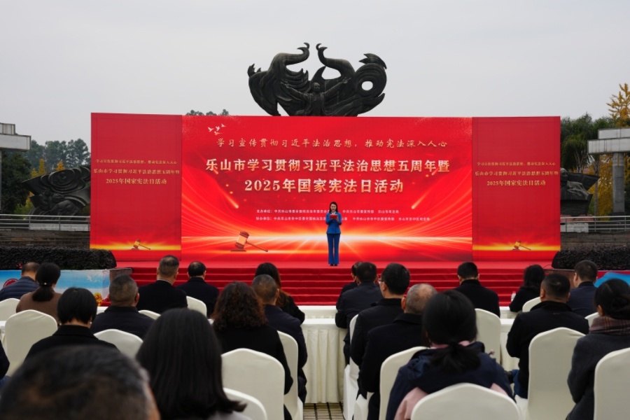 12月4日上午,乐山市2025年国家宪法日活动在乐山广场举行,通过发布乐山法治建设典型案例、开展法律咨询服务、法治游园活动等形式,全面展示乐山市法治建设成果。