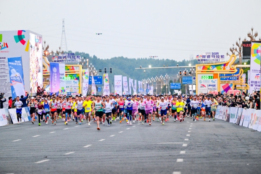 当天上午8时,寒意不掩热情。发令枪响后,1.3万名跑者从乐山世豪广场出发,在融合自然奇观与人文底蕴的乐山,开启这场贯穿“双遗产”的奔跑盛宴。