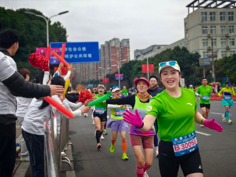 作为全国首个以“世界文化与自然双遗产”为主题的马拉松,跑者在青山绿水间穿行,远眺乐山大佛的庄严,感受峨眉山云海的飘逸,途中还可领略沿江古城风貌与生态湿地景观。在美丽山水间,更有川剧变脸、嘉阳桫椤舞、马边彝族歌舞、峨眉武术等深度融合本地非遗与民俗的助威展演,让奔跑不仅是竞技,更成为一场沉浸式双遗产体验之旅。