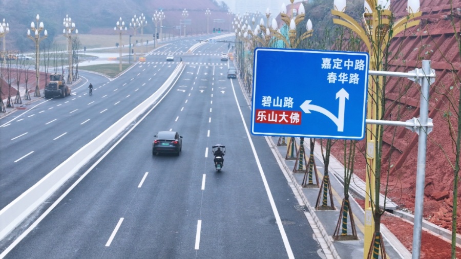 12月30日,乐山市主城区缓堵保畅重点项目——致江路桥-S305线道路新建工程正式通车。这条全长约1.413公里的城市“动脉”,不仅打通了“乐山高铁站—新广场—致江路大桥—S305线”横向城市主轴线,还成了城区东向交通门户。