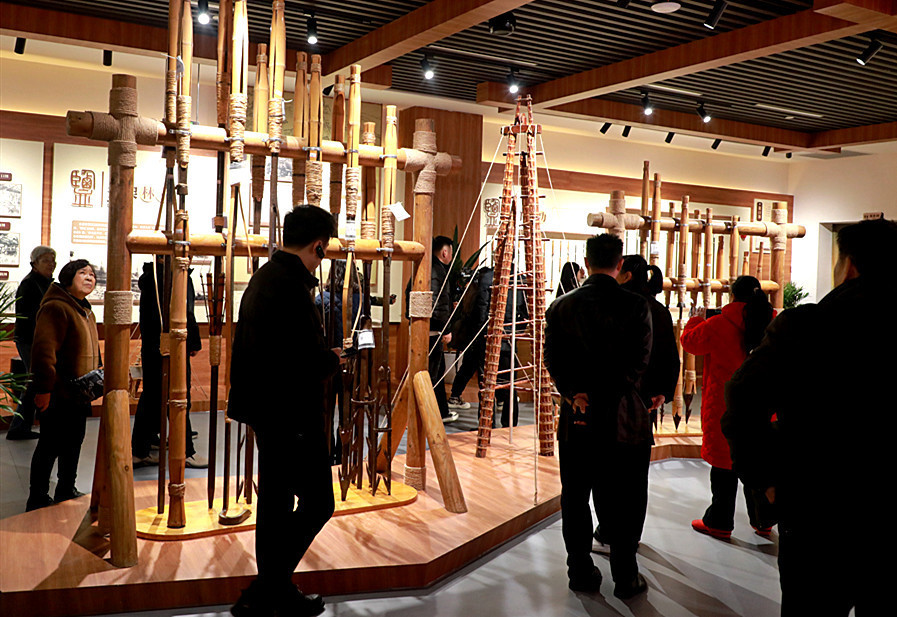 地下盐卤如何提捞?博物馆里的“卓筒井”模型,再现盐工如何使用精巧的人力工具“啃”开坚硬岩层,在盐工号子的伴奏下冲击地下,可达数百米。