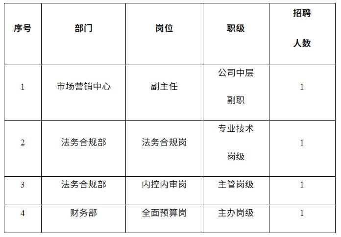 此次公开招聘专业人才4个岗位,共4人。具体部门、岗位、职级和人数如下表所示。(岗位具体要求详见附件1)