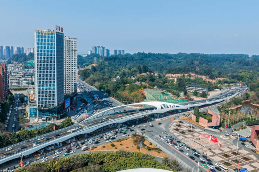 2月11日,乐山中心城区青衣路跨线桥通车。690米的流畅身段,轻盈跨越车水马龙,成为一道新的城市风景。
