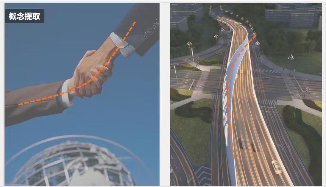 青衣路跨线桥坐落于乐山老城区与高新区的中枢节点,是串联两大城市功能区的核心交通纽带。规划院介绍,桥梁的设计理念源于一双有力紧握的大手,两弧交错勾勒出椭圆形景观框,实现南北纵向视野通透,让城市空间更具层次与美感。弧形延展的流线赋予这座交通枢纽鲜明的现代科技质感,构建过程中几何图形的规整美学,更让跨线桥兼具韵律与节奏的视觉体验。