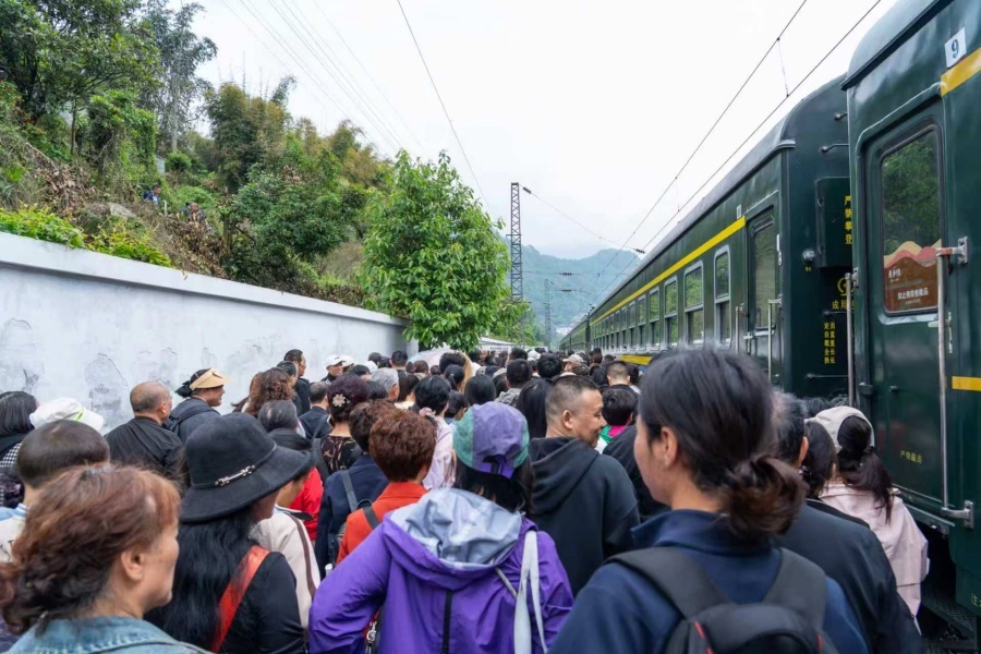 代湾站副站长苏翔介绍,代湾站只是一个铁路乘降所,没有候车室,旅客只能在站台候车,“以前上下旅客最多不超过20人,从三月中旬爆火以来,单日最少都有二百余人上下车,最高峰甚至超过一千人。”