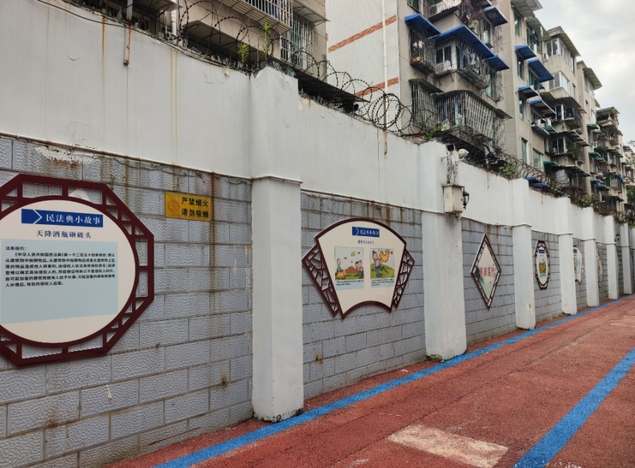 近日,川观新闻走进该小区,路面干净整洁、车辆有序停放,小区微景观中随处可见法治元素,树荫下石桌旁,老人们围坐在一起下棋、打牌,和睦温馨。
