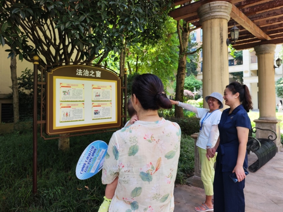 “电梯损坏、屋顶漏水等可以使用建筑物及其附属设施的维修资金进行维修……”茶余饭后,业主刘继嫦和女儿一同在小广场散步,广场两侧法治之窗宣传栏里刚刚更新的普法知识,吸引了她的注意,“全是和我们日常生活息息相关的内容,每季度更新一次,让我这个老太太也活到老学到老。”
